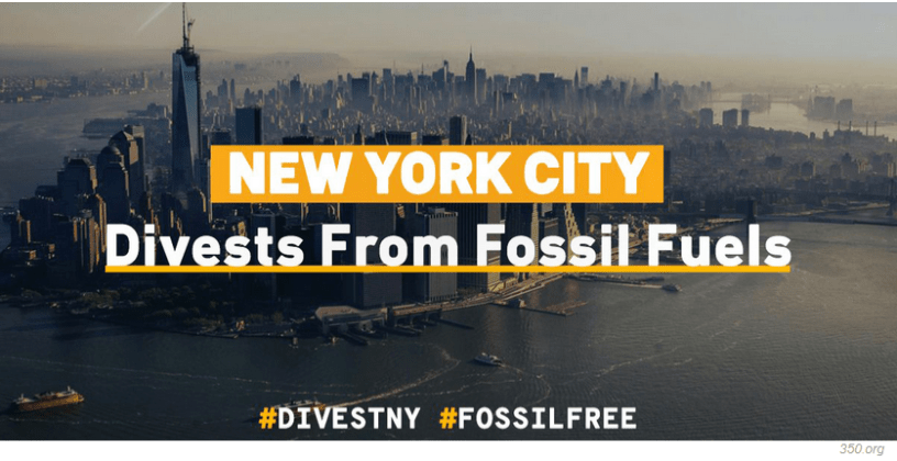 Преди няколко часа кмета на Ню Йорк Бил Де Блазио обяви, че изчиства пенсионните фондове от ценни книжа на фосилната индустрия. Става дума за 5млрд. от общо 190 млрд. долара. Освен това ще заведе дело срещу Exxon, Chevron, Conoco, BP и Shell за вредите нанесени от климатичните промени. Бил Макибън беше от едната му страна.