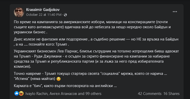 Разчитайте на Krassimir Gadjokov да ви гаслайтва докато се е самозаявил като стожер на истината.