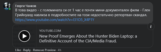 Но да припомня. В навечерието на изборите излязоха документи от т.нар. лаптоп на Хънтър Байдън в статия в New York Post, четвъртия по големина вестник в САЩ с над 100 годишна история. Автенчични документи демонстриращи корупция с участието на сина на Байдън, Хънтър, с референции към Джо Байдън("the big guy").