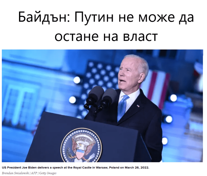 Байдън за пореден път артикулира американската политика на смяна на режима. Явно не бива да очакваме помощ от братята американци… Те изглежда са отдадени на тази политика, безогледно на това колко украинска кръв ще струва това.